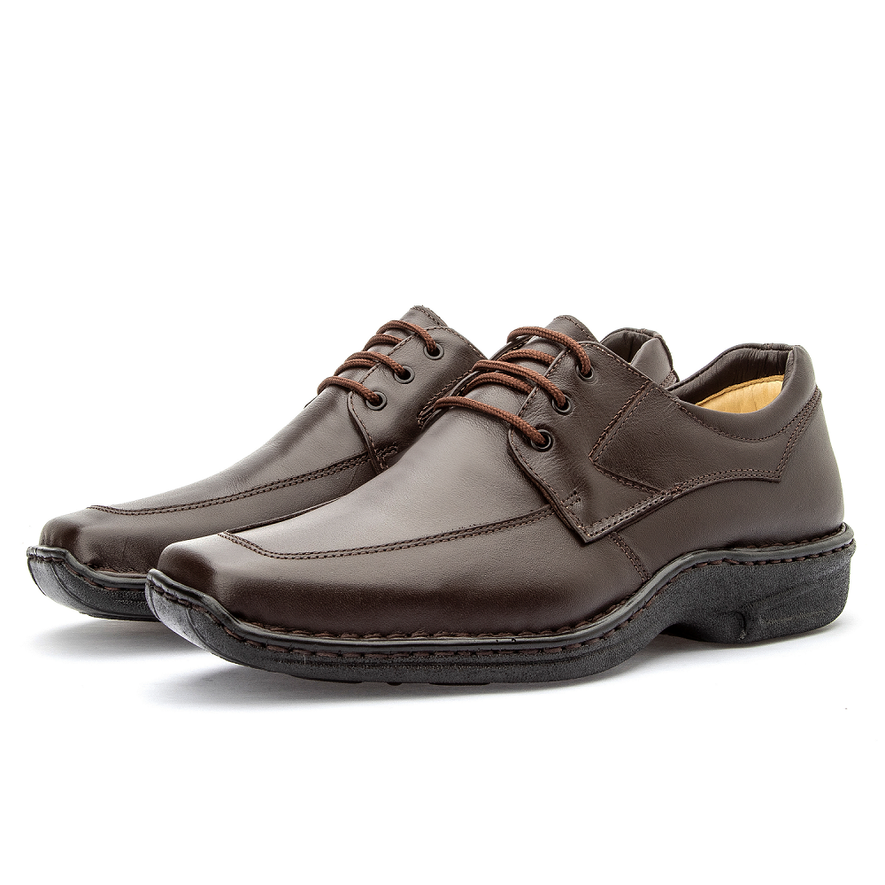 SAPATO MASCULINO CONFORT GEL COM CADARÇO EM COURO